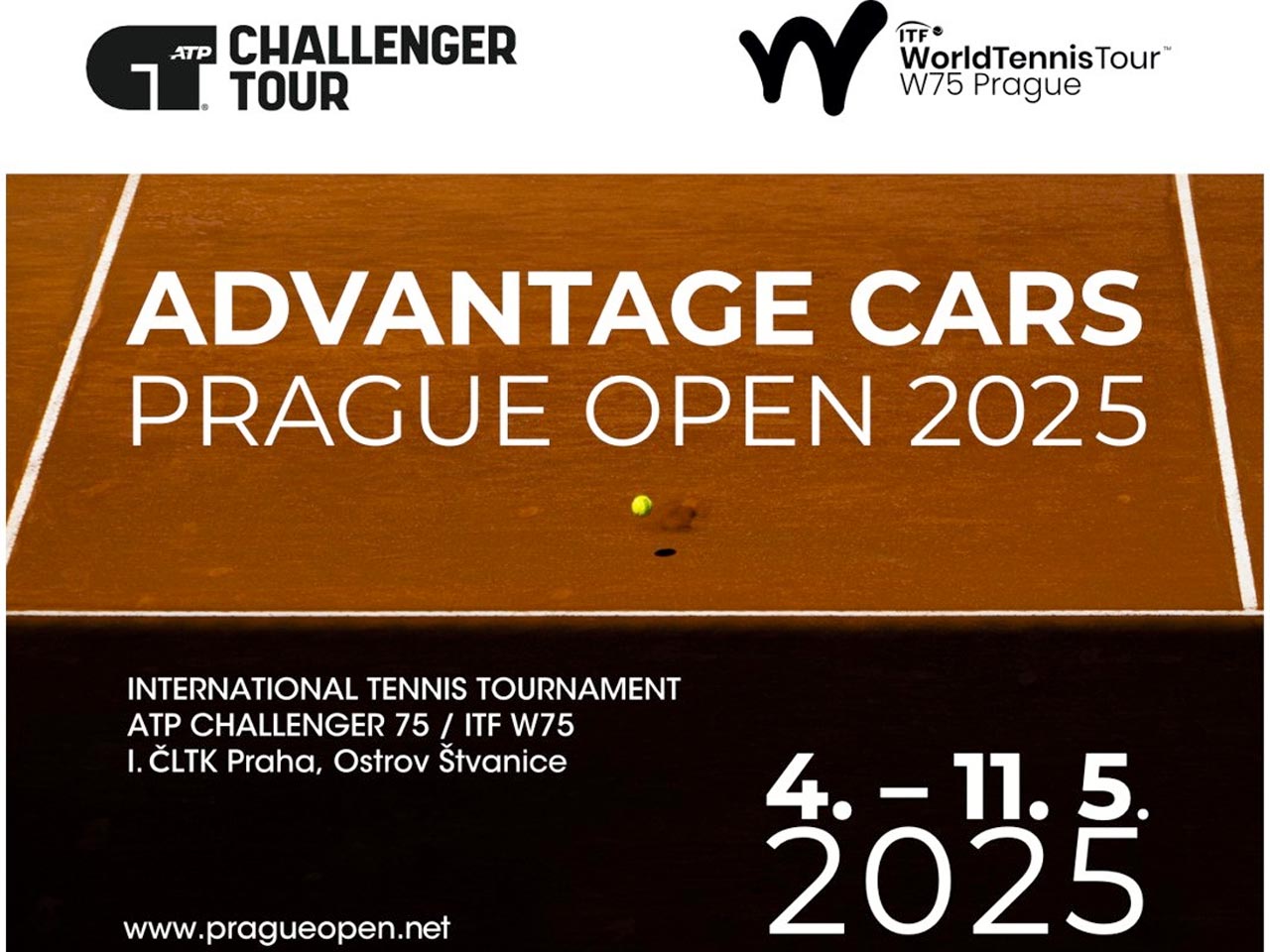 Advantage Cars Prague Open 2025 I. Český Lawn-Tennis Klub Praha a společnost Perinvest Vás srdečně zvou na týden světového tenisu na Štvanici. V termínu od 4. do 11. května se v areálu klubu opět uskuteční kombinace mužského ATP Challenger Tour 75 a ženského ITF Women’s World Tennis Tour W75, to vše pod názvem ADVANTAGE CARS PRAGUE OPEN 2025.