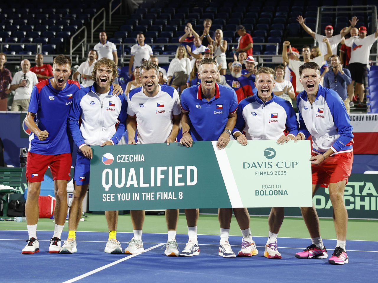 Davis Cup: Češi si zahrají na finálovém turnaji! Velký obrat zařídili Lehečka a Menšík14.09.2025 Čeští tenisté zvládli v Delray Beach druhé kvalifikační kolo Davis Cupu proti Spojeným státům americkým a zvítězili 3:2! Sobotní program odstartoval čtyřhrou, v níž Jakub Menšík s Tomášem Macháčem po velkém boji padli s Austinem Krajickem a Rajeevem Ramem. Jiří Lehečka posléze udolal ve třech setech Taylora Fritze. O postupujícím týmu do „Final 8“ rozhodl až závěrečný souboj, v němž Jakub Menšík po skvělém výkonu nedal šanci Francesovi Tiafoeovi. Menšík poslal Čechy na finálový turnaj Davis Cupu! |