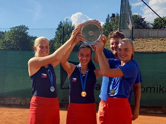 Alena Kovačková vyhrála Mistrovství Evropy do 14 let v Mostě Alena Kovačková (2008, TE U14 1) vyhrála Mistrovství Evropy v kategorii dívek do 14 let, které se hrálo v Mostě. Ve finále porazila Slovenku Pohankovou 5:7, 6:4, 6:4. Čtyřhru vyhrály Eliška Forejtková s Alenou Kovačkovou, které v českém finále porazily Lauru Samsonovou a Veroniku Sekerkovou 4:6, 6:1, 10:3. Na Mistrovství Evropy do 16 let v Přerově došli do semifinále Lucie Urbanová a Jan Kumstát. V kategorii do 18 let v Klosters do semifinále došli Brenda Fruhvirtová a Jakub Menšík. Menšík spolu s Jakubem Nicodem vyhráli čtyřhru.