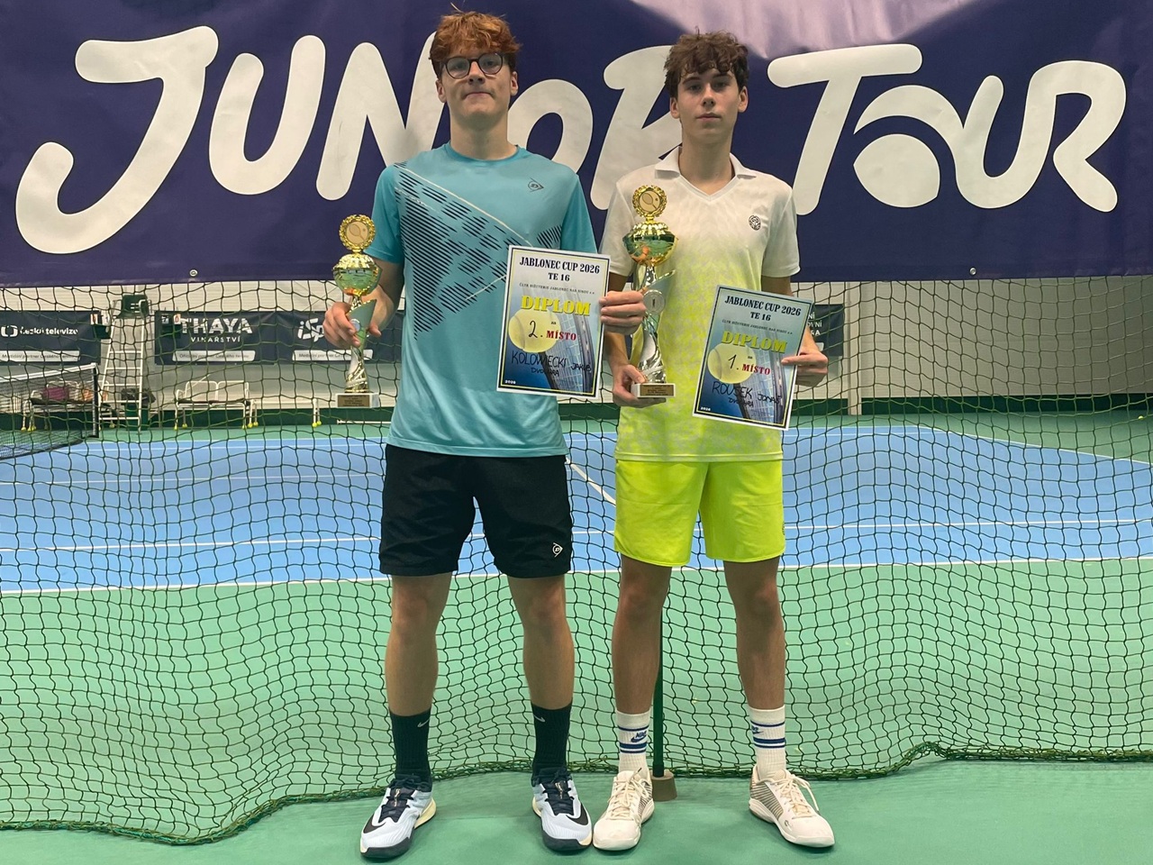 Jablonec Cup: Rousek slaví dva tituly. České naděje dominovaly ve čtyřhře Na turnaji Tennis Europe do 16 let v Jablonci nad Nisou se velmi dařilo českým nadějím. Jonáš Rousek (na fotografii vpravo) triumfoval na halové akci kategorie 2 ve dvouhře i ve čtyřhře, v párové disciplíně spojil síly s Vojtou Jarošem. V dívčí čtyřhře získaly titul Eliška Kučerová a Zuzana Langášová.