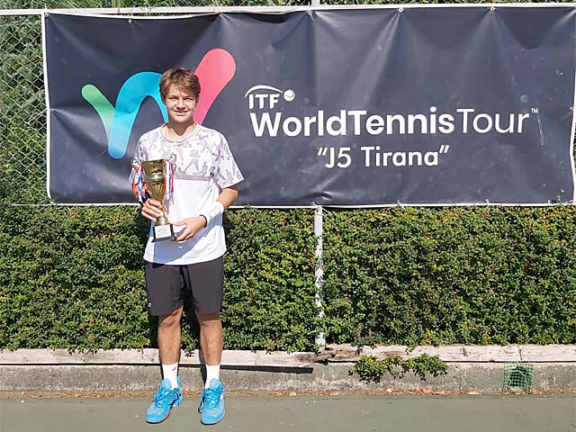 Kalina vyhrál už druhý turnaj ITF J5 v Albánii Vít Kalina (2005, ITF 374) vyhrál mezinárodní turnaj hráčů do 18 let v albánské Tiraně. Ve finále porail Itala Augentiho 6:4, 6:4. Vítězství by mělo Víta Kalinu posunout zhruba o 90 míst vzhůru žebříčkem ITF.