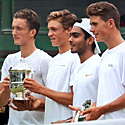 Jonáš Forejtek (2001, ITF 4) a Jiří Lehečka (2001, ITF 33) vyhráli čtyřhru na juniorce Wimbledonu 2019. Ve finále porazili kanadsko-americkou dvojici Draxl/Nanda 7:5, 6:4. Výsledky. 14.07.2019 |