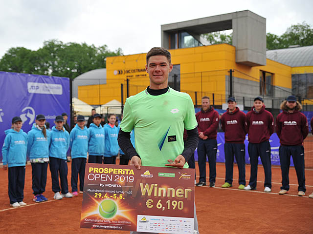 Kamil Majchrzak (1996, ATP 129) zvítězil ve finále ostravského challengeru Prosperita Open 2019 by MONETA nad mladým Italem Sinnerem (2001, ATP 298) 6:1, 6:0. Majchrzak se posune na 115. místo žebříčku ATP, Sinner na 263. místo. Vítězem čtyřhry jsou Švýcar Luca Margaroli a Slovák Filip Polášek, kteří ve finále porazili Nizozemce De Bakkera a Griespoora 6:4, 2:6, 10:8. Výsledky: dvouhra, čtyřhra, program. 05.05.2019 |
