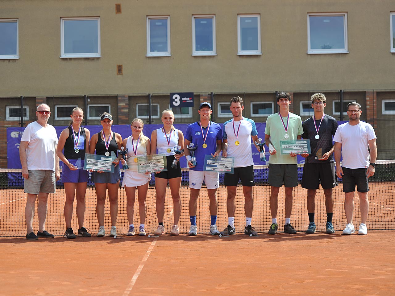 MČR mužů a žen v Ostravě 2025: První medaile rozdány Ve středu se předávaly první medajle v soutěži čtyřher na 74. mistrovství ČR mužů a žen v Ostravě. 3. místo v soutěži čtyřher mužů obsadily dvojice Hozman Dominik - Kusý Jan a Kovařík David - Zoubek Vojtěch. V kategorii žen v soutěži čtyřher jsou poraženými semifialistkami Brožová Natálie - Kopřivová Nikola a Šílová Nela - Vajsejtlová Tereza. Ve čtvrtek se budou hrát semifinálové zápasy dvouhry a finále čtyřhry. LIVESCORE (od středy). Hrací