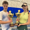 Agel Prague Open: Duda a Bervid ovládli domácí juniorský turnaj ITF Na halovém juniorském turnaji kategorie ITF J60 v Horních Měcholupech se minulý týden ve všech disciplínách radovaly domácí naděje. Mezi chlapci zvítězil Adam Duda (TK Horní Měcholupy), turnaj dívek ovládla Victoria Bervid (I. ČLTK Praha). Domácí hráči ukořistili i deblové trofeje.